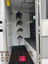 4′ dressing room features 4 saddle racks, bridle hooks, blanket bar, clothing bar, carpet in nose and drop sheet, rubber mats on floor, boot box